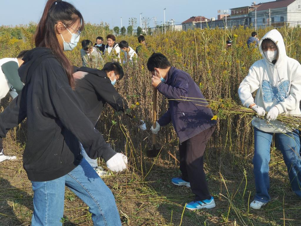 倡议一经发出,就得到滨湖校区全体同学和管理服务人员的的积极响应。志愿劳动于11月5日、6日两个下午在滨湖校区运动场西场地有序开展。滨湖校区相关部门人员、部分二级学院领导和辅导员现场分发工具,合理划分劳动区域,组织学生有序进场开展劳动,并身先士卒,以身作则,冲锋在前;校区部分保安、物业服务人员积极参与,带头挥锹,示范引领;同学们在辅导员老师组织带领下,冲进“一枝黄花”丛中,分片包干,齐头并进,有的用锹铲、有的用手拔、有的捡拾残枝,大家相互比拼,快速推进。现场不时响起“小心脚下”、“小心手”、“我们一起拔”这样贴心而温暖的话语。