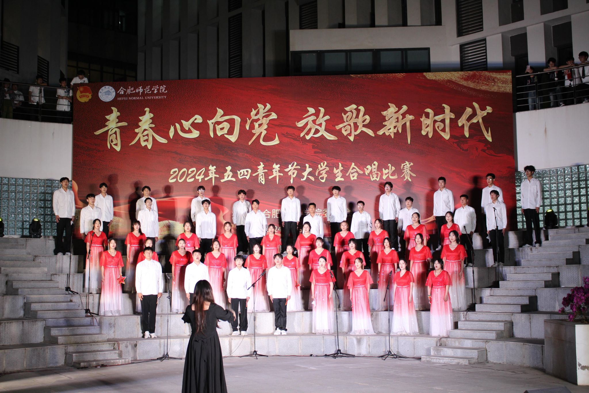 比赛过程中,体院同学用他们热情洋溢的歌声,唱出了青春的激情,展现了新时代青年的风采。在舞台上,同学们声音洪亮,旋律优美,深情地演绎了多首充满青春活力的歌曲。无论是激昂的《光荣啊,中国共青团》,还是充满深情的《同一首歌》,都充分展现了同学们对五四精神的热爱和传承。在演唱过程中,同学们精神饱满、积极乐观、节奏准确、声情并茂,充分显示出了体育科学学院学子的朝气和热情。