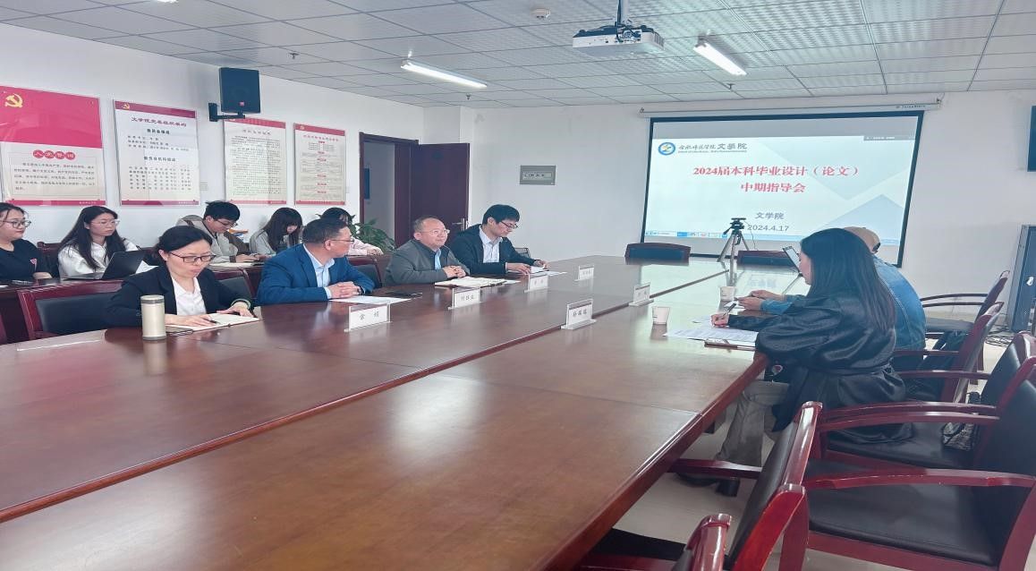 为切实提升本科毕业设计(论文)质量,4月17日,文学院召开2024届毕业设计(论文)行业专家指导会,对本科毕业设计(论文)进行中期审阅。安徽广播电视台综艺体育频道体育节目部主任汪纯,安徽广播电视台综艺体育频道编导、导演孙瑞瑞应邀对新闻传播系的10部毕业作品进行现场指导,文学院部分指导教师和学生参会。