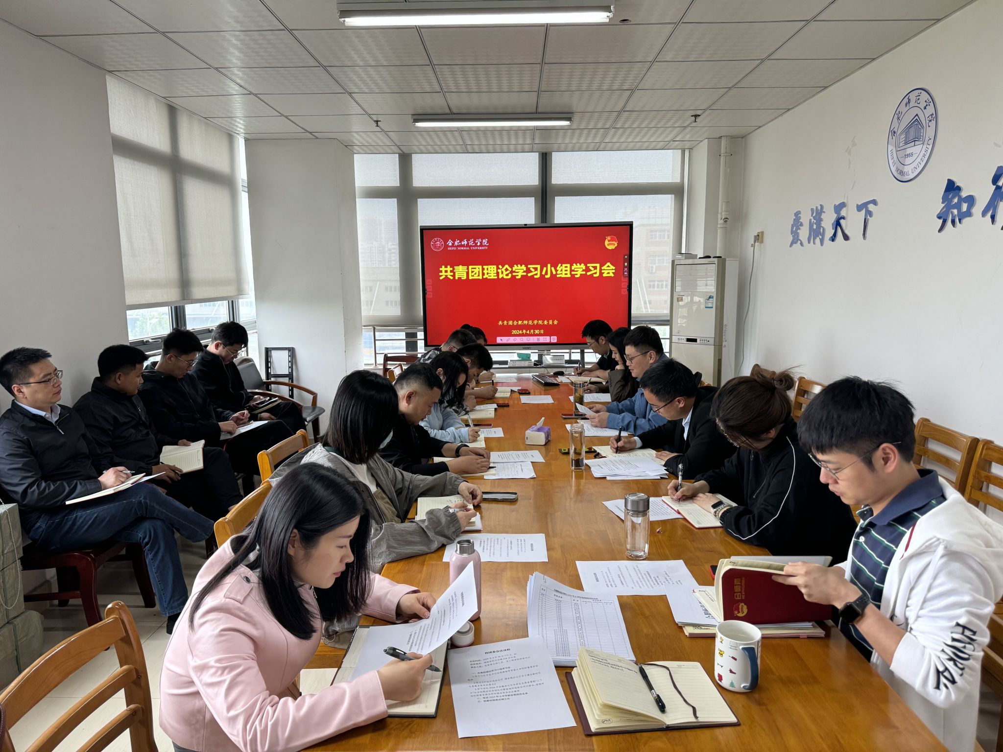 4月30日下午,院团委召开团委会暨共青团理论学习小组集体学习会。院团委委员、学院共青团理论学习小组全体成员参加会议,院团委书记刁文彬主持会议。