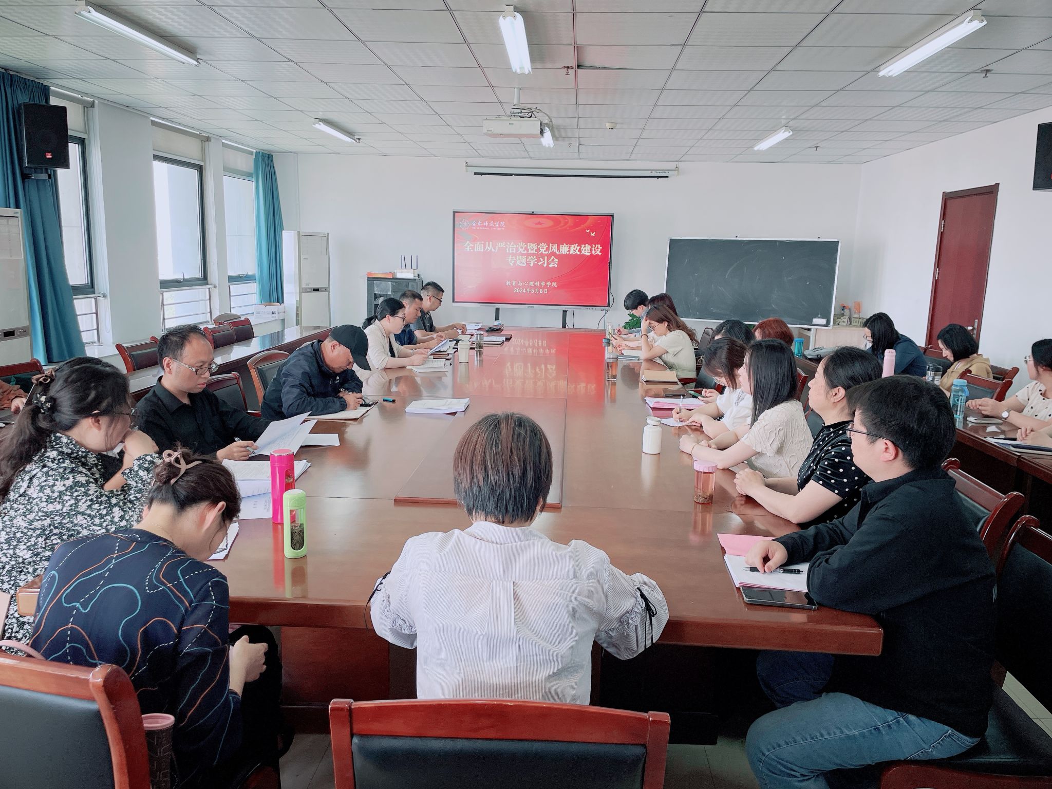 院党委书记董萍领学党的二十大报告中“坚定不移全面从严治党,深入推进新时代党的建设新的伟大工程”内容,传达了2024年全省教育系统全面从严治党工作视频会议精神以及学校2024年全面从严治党工作会议精神;党委委员、副院长胡连峰领学《中国共产党纪律处分条例》第一章;党委副书记、纪委书记陈帅帅传达了学校《关于印发<推进群众身边不正之风和腐败问题集中整治工作方案>的通知》;全体教职工共同观看了党风廉政警示教育片《永远吹冲锋号》第二集。随后,党员教师唐银、蒋晨晓、姚琼立足岗位,就抓好党风廉政建设,强化廉洁自律,加强师德师风建设进行了专题研讨、逐一发言。