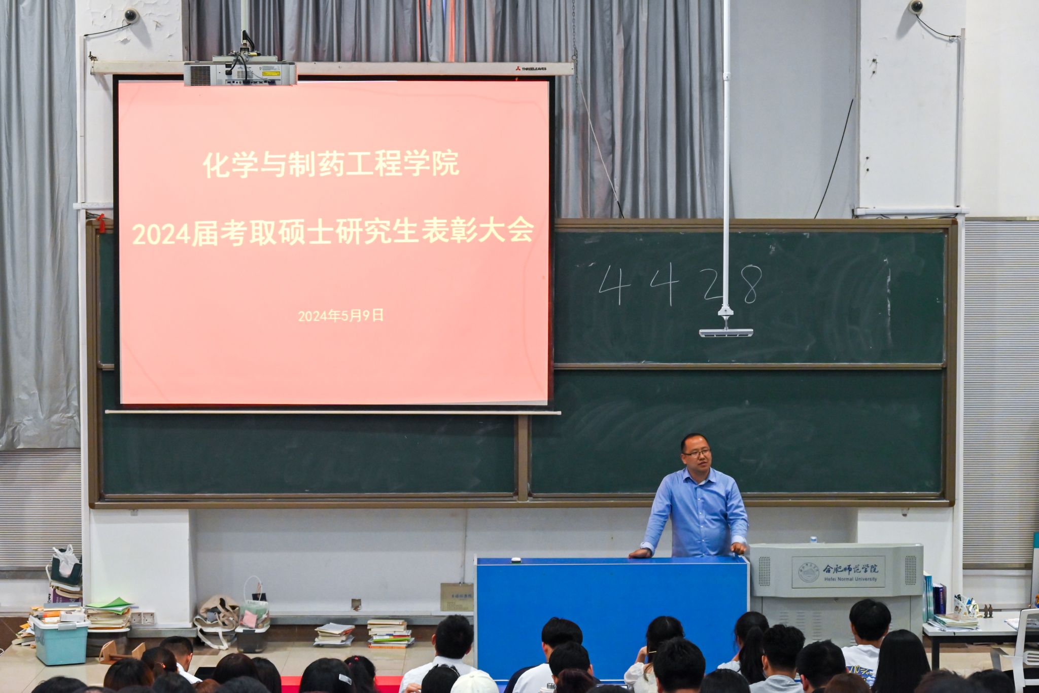 为表彰考研成功优秀学子,激励威尼斯官网广大学子考研热情,弘扬优良的院风学风,5月9日,化学与制药工程学院于逸夫楼西阶3教室举办2024届毕业生考取研究生表彰大会,会议由毕业班辅导员汪颖主持,各班辅导员、学业导师,2024届毕业生考取研究生学生以及学院各年级在校生参加会议。